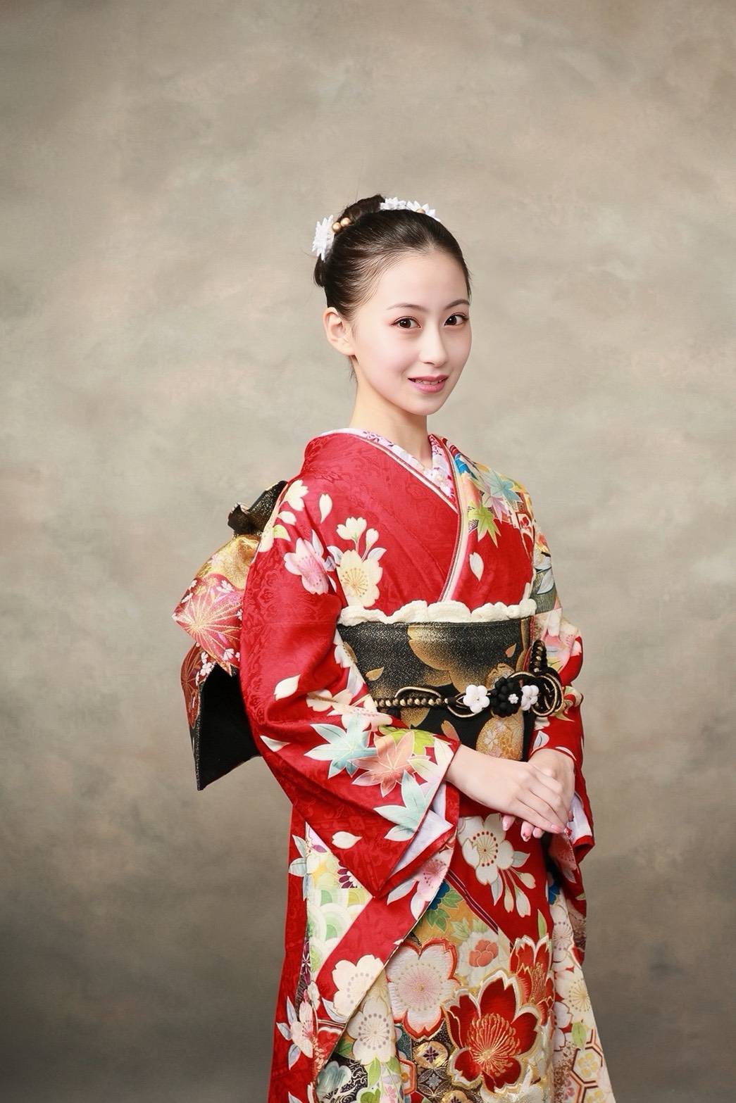 前撮りではたくさん悩んだ結果赤の振袖にしました。