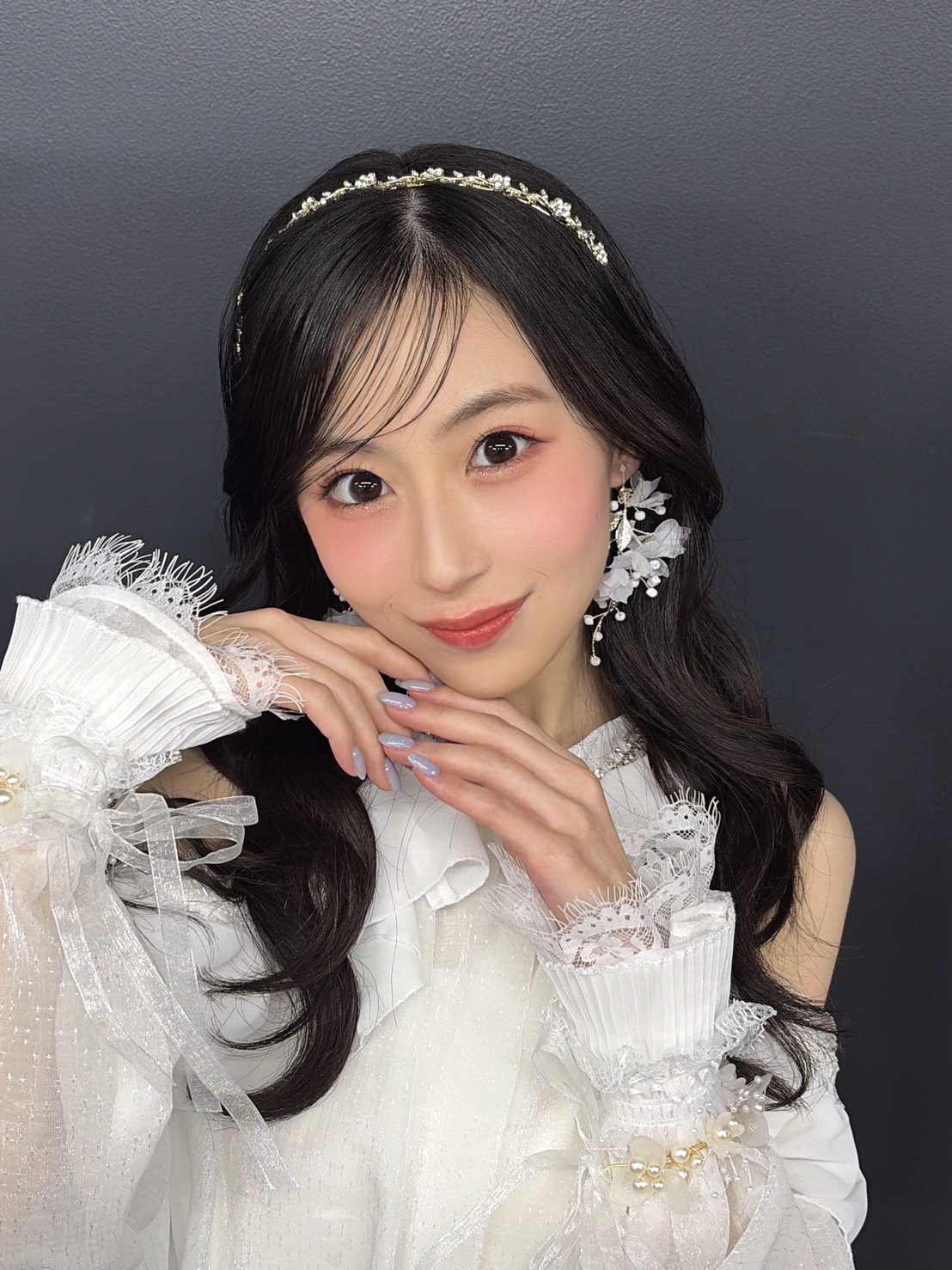 わたしの希望を全て詰め込んでくださって、後ろも小さなリボンになっていたり、イヤリング・手もと・カチューシャはお花モチーフになってます!よーく見てみてね👀