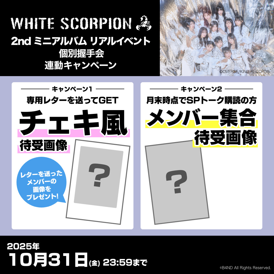 10月4日(土)WHITE SCORPION 2nd ミニアルバム『Corner of my heart 』ホワスピ盤 リアルイベント個別握手会の開催を記念し、メッセージサービス「B4ND」にて2大キャンペーンの実施が決定しました!