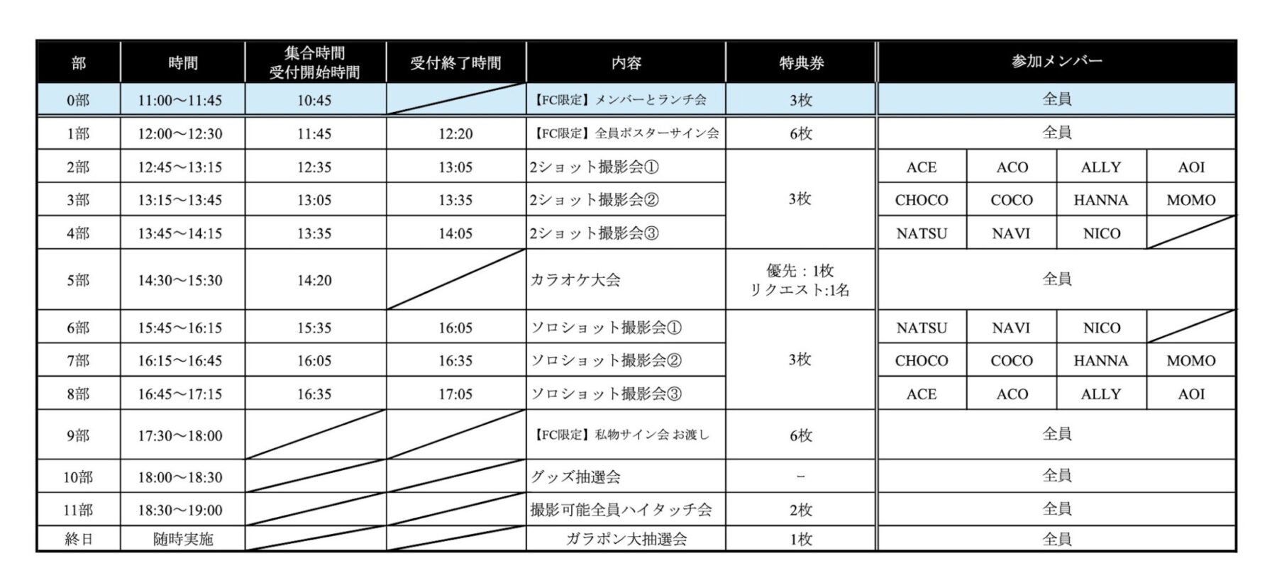 ▼特典会 事前抽選スケジュール