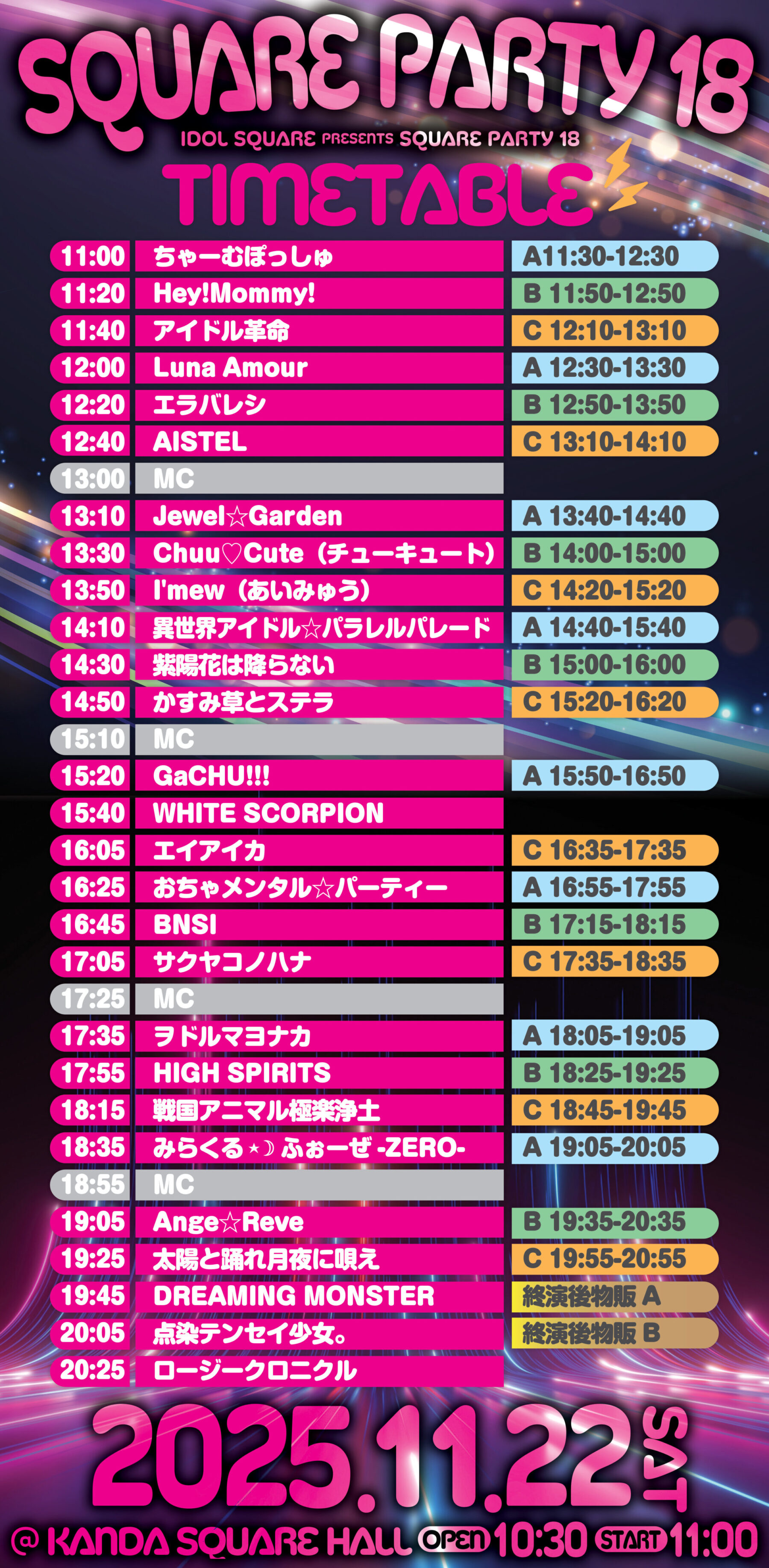 11月22日(土)「IDOL SQUARE presents SQUARE PARTY18」出演決定!