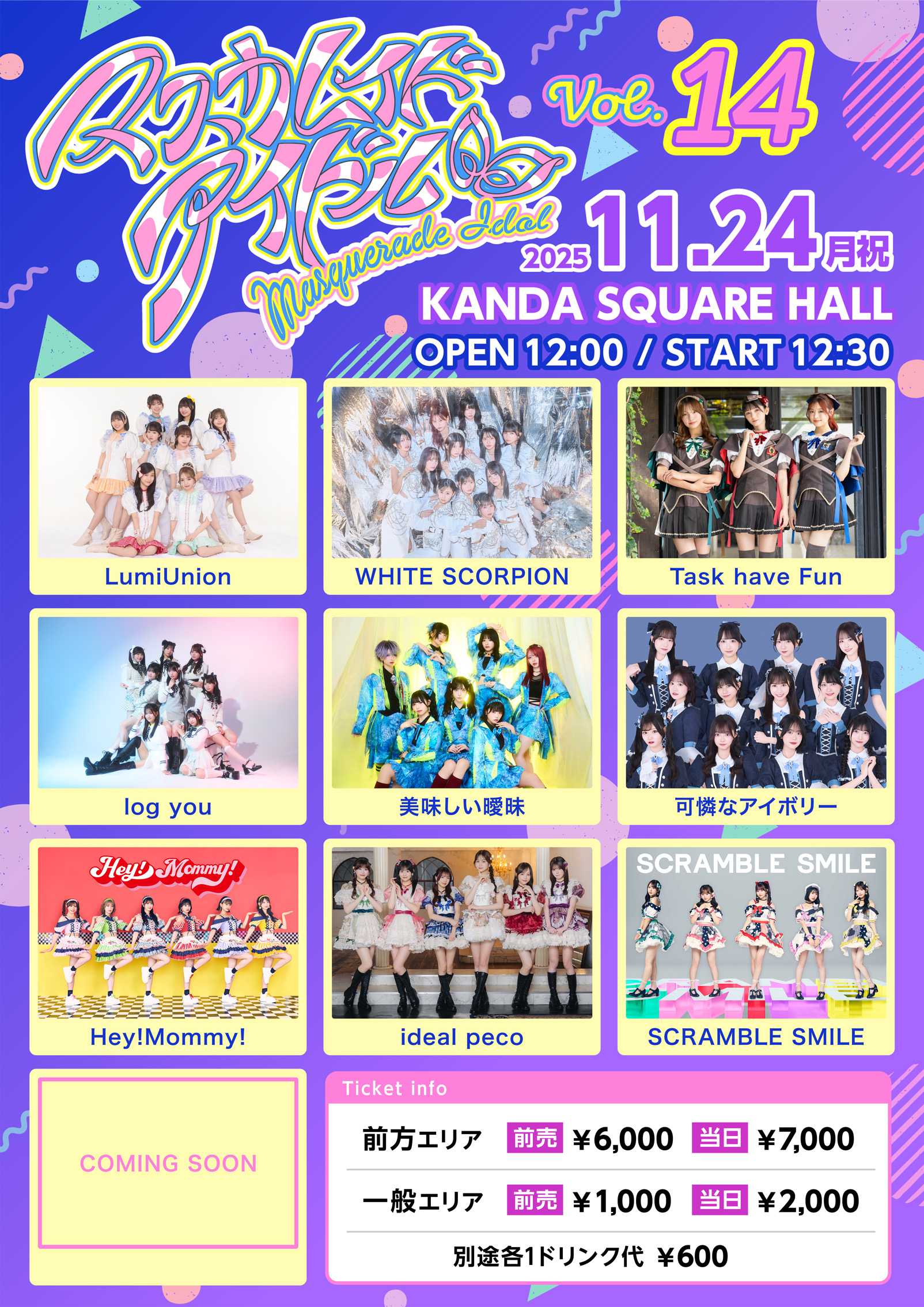 11月24日(月・祝)「マスカレイド・アイドルvol.14」出演決定!