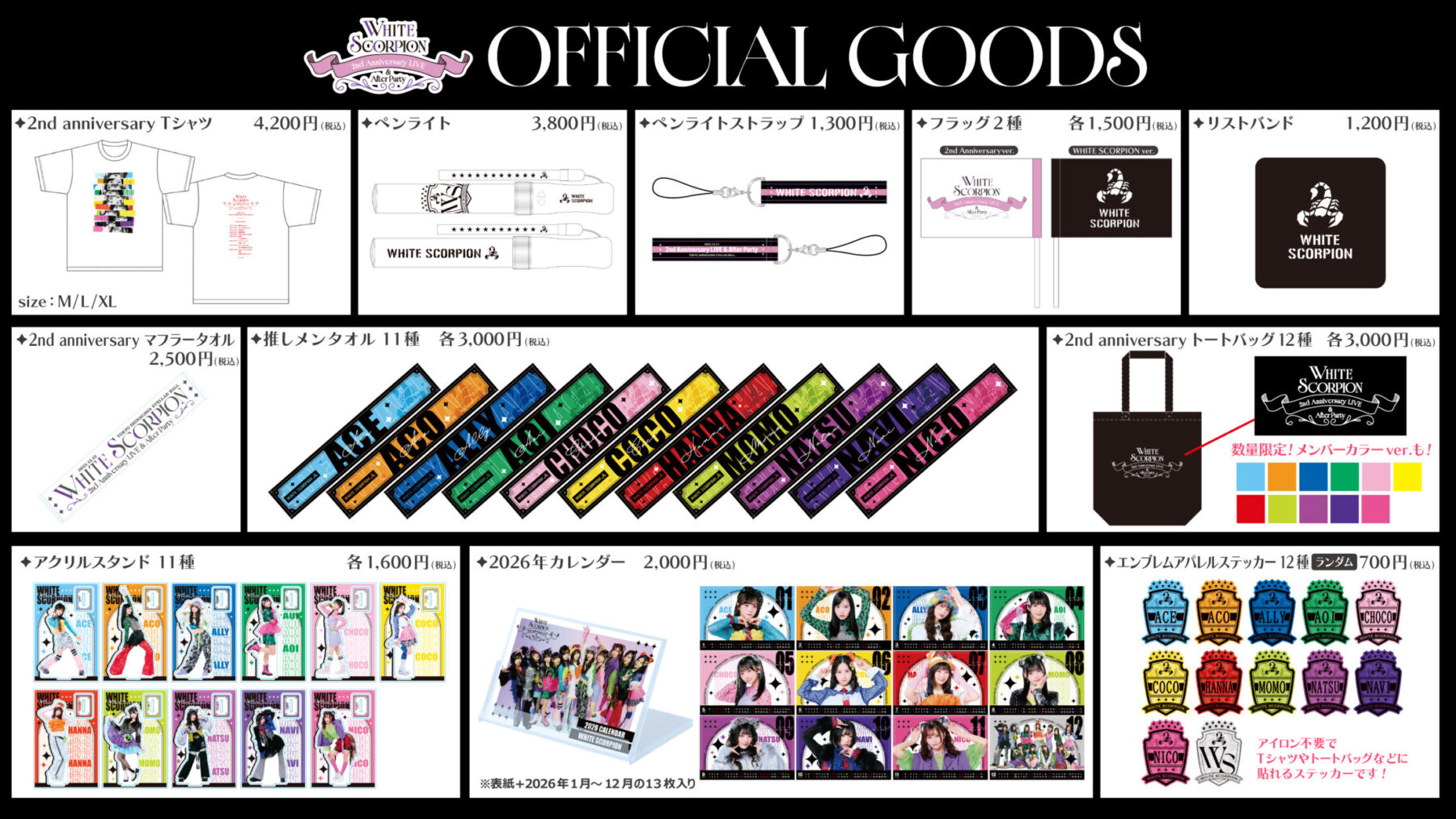「WHITE SCORPION 2nd Anniversary LIVE」&「2nd Anniversary LIVE After Party」グッズ公開!