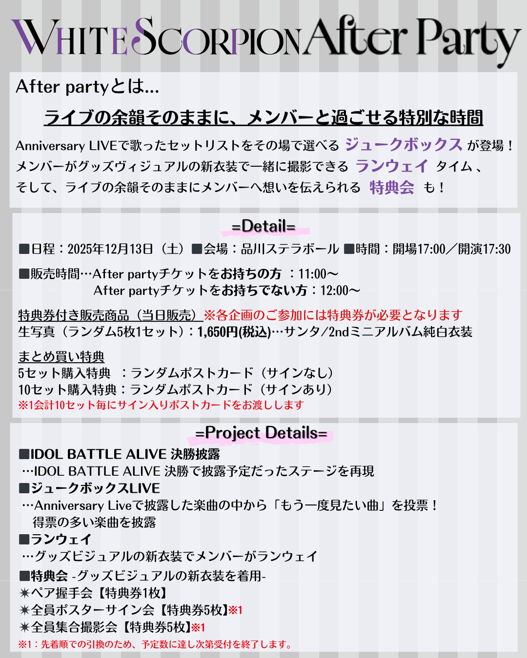 12月13日(土)開催 「WHITE SCORPION 2nd Anniversary LIVE」のあとに行われる