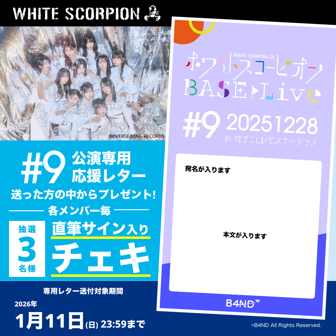 12月28日(日)『ホワイトスコーピオン BASE Live #9』B4ND感想レターキャンペーン実施決定!