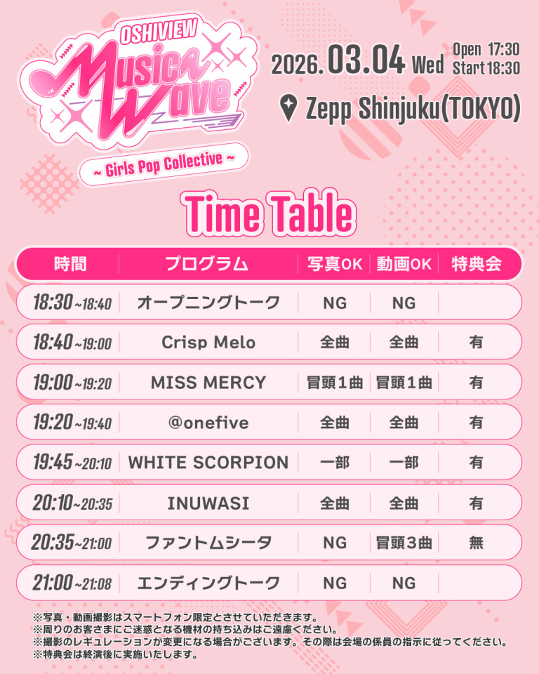 3⽉4⽇(⽔)Zepp Shinjuku にて開催される「OSHIVIEW Music Wave〜Girls Pop Collective〜」に WHITE SCORPION の出演が決定しました!