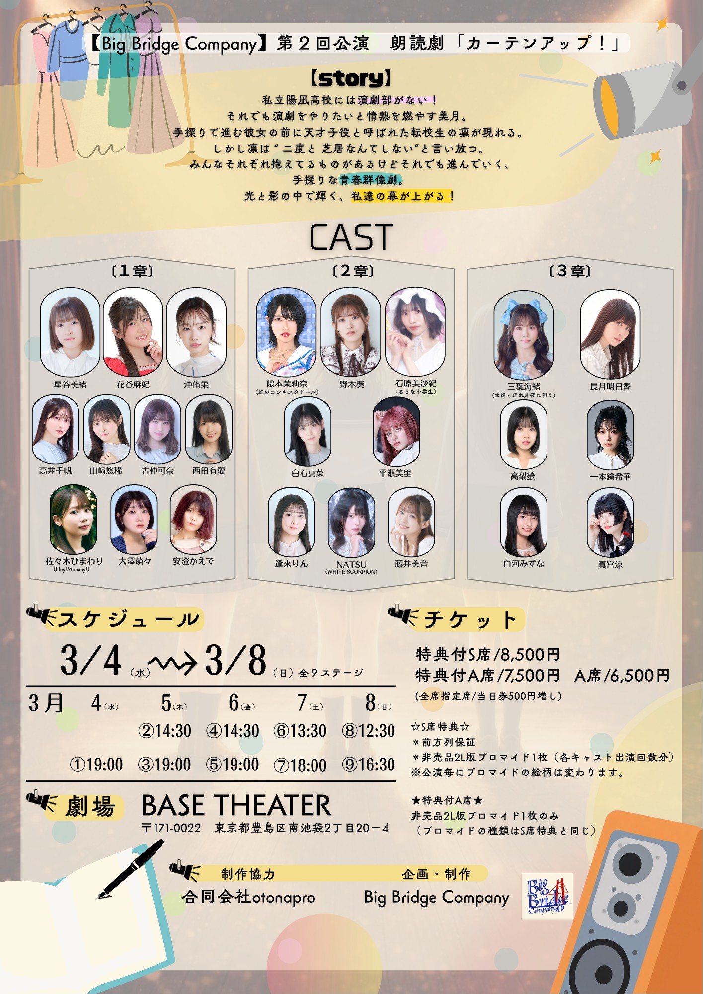 2026年3月4日(水)〜 3月8日(日)開催、Big Bridge Company 第二回公演 朗読劇『カーテンアップ!』に NATSU の出演が決定しました!