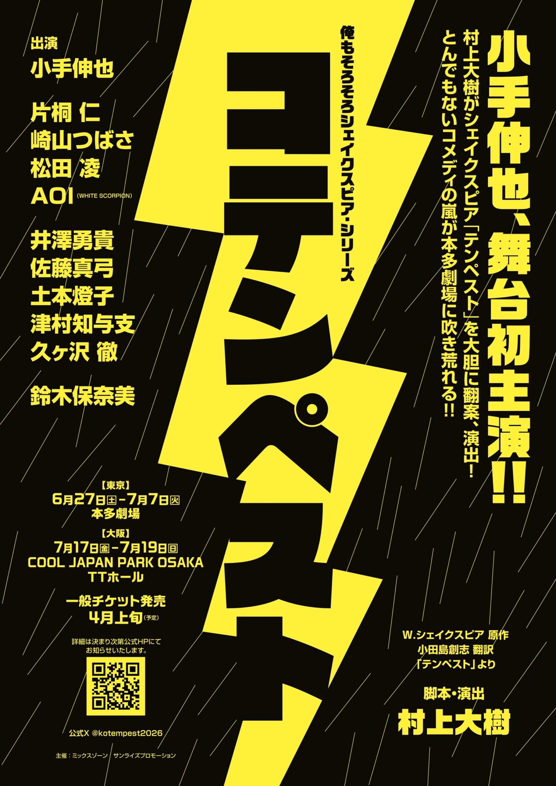 2026年6月27 日(土)~7月7日(火)本多劇場、7月17日(金)~19日(日)COOL JAPAN PARK OSAKA TT ホールにて公演される舞台 「俺もそろそろシェイクスピア・シリーズ『コテンペスト』」にAOIの出演が決定しました!