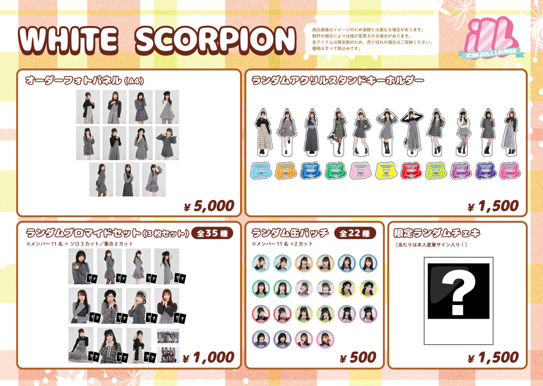 WHITE SCORPIONは【GRL】さんの衣装を着用した限定アーティスト写真を使用したグッズを販売いたします。