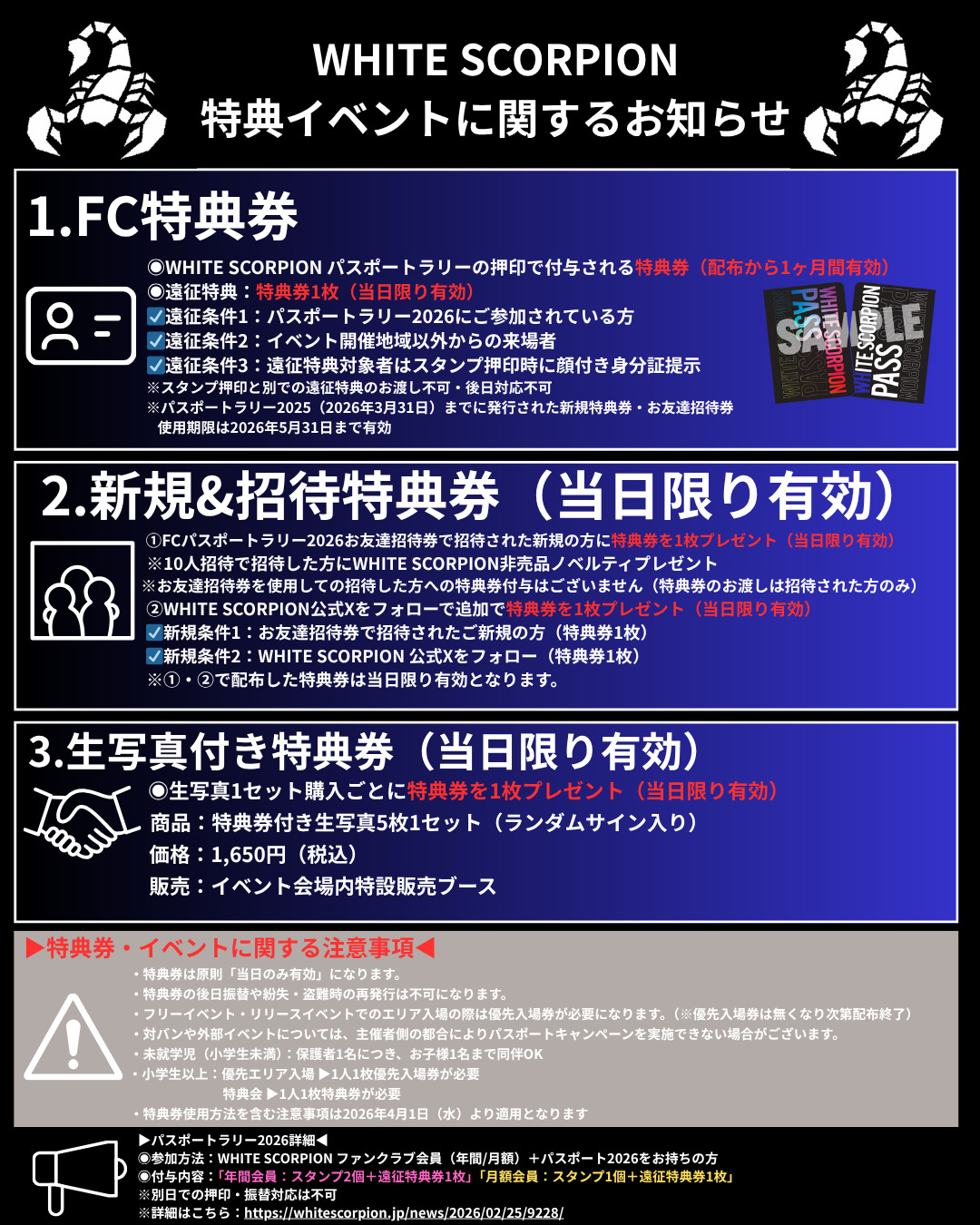 WHITE SCORPION 特典イベントに関するご案内