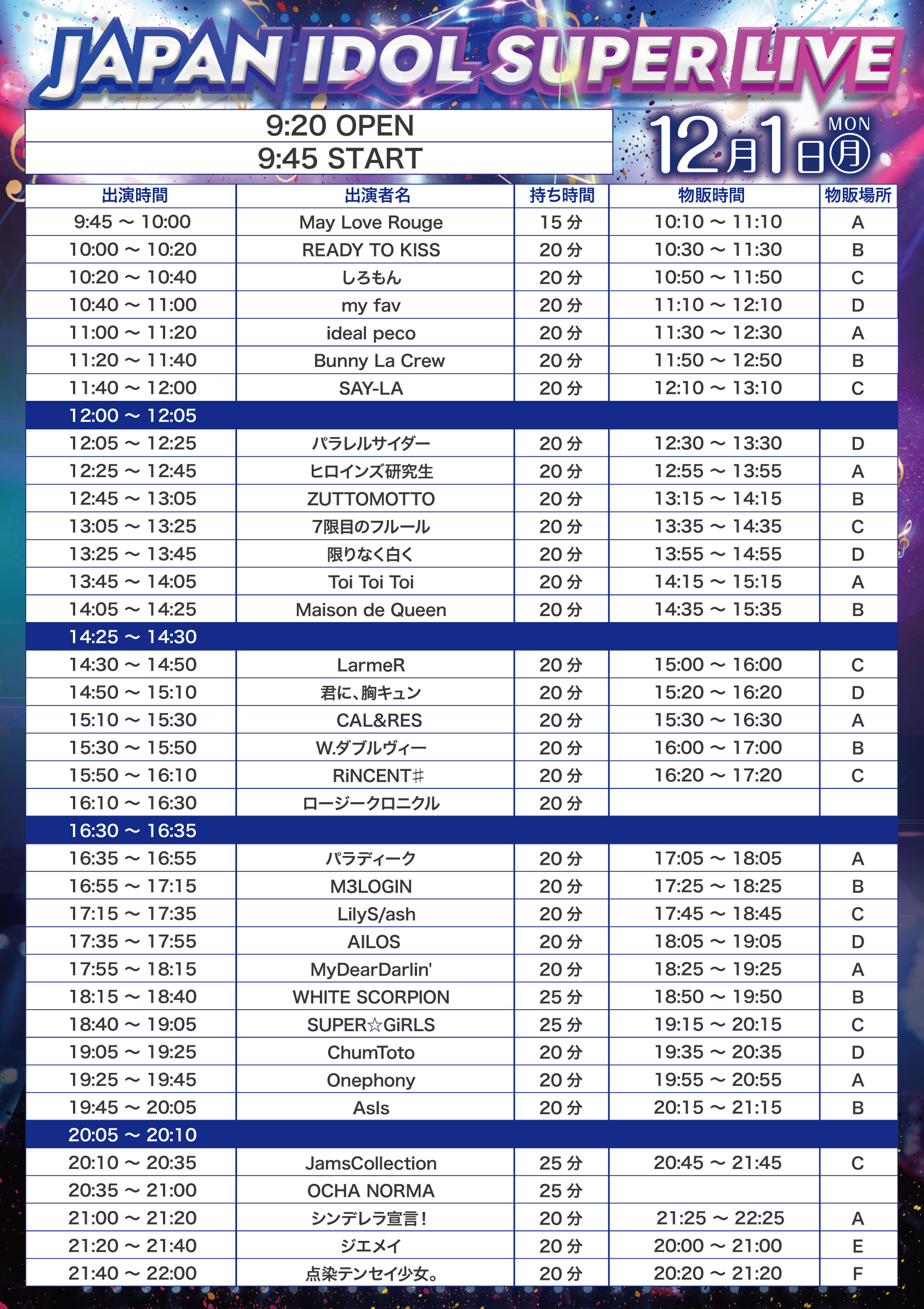 時 間:開場:11:00 開演:11:30 ※変更の可能性がございます。